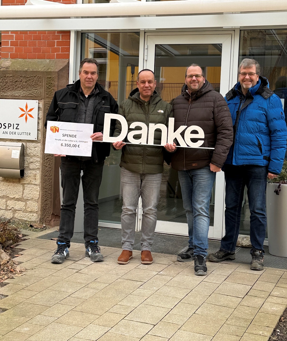 Ein starkes Zeichen der Verbundenheit: HMN Gewerbe- und Industriebau GmbH & Co. KG. Ingo Ballay, Andreas und Tobias Heine überreichten an den Geschäftsführer des Hospizes, Daniel de Vasconcelos, den großen Spendencheck. Die drei engagieren sich bereits seit vielen Jahren für die Hospizarbeit und verbinden die finanzielle Hilfe mit praktischem Nutzen.